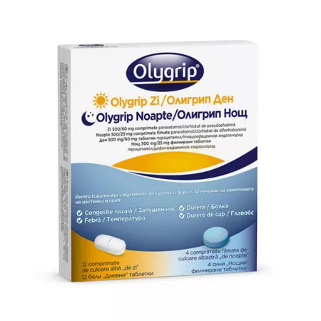 Olygrip Zi 500/60mg comprimate, Olygrip Noapte 500/25mg comprimate filmate * 12+4 comprimate