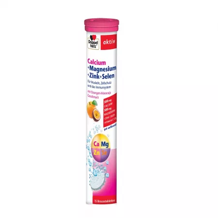 Doppelherz aktiv Calciu, Magneziu, Zinc, Seleniu * 15 comprimate efervescente