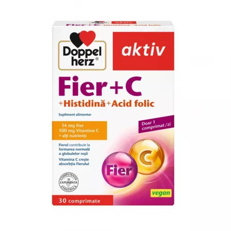 Doppelherz aktiv Fier+Vitamina C+Acid folic+Histadină * 30 comprimate