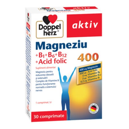 Doppelherz Aktiv Magneziu 400 mg+B1+B6+B12+Acid folic * 30 comprimate