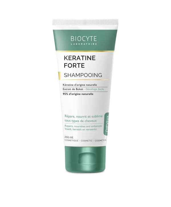 Firul de par este alcatuit din keratina in proportie de 85%. Stresul cotidian, poluarea sau stilul de viata pot degrada parul şi, de aceea, nivelul de keratina din compozitia acestuia se diminueaza. Samponul Biocyte cu keratina pura ajuta la restructurarea firului de par, il protejeaza impotriva intemperiilor si il ajuta sa se regenereze progresiv.