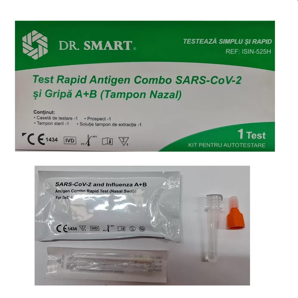 Dr. Smart test rapid antigen combo Gripă A+B si Sars-cov 2 (tampon nazal) * 1 bucată