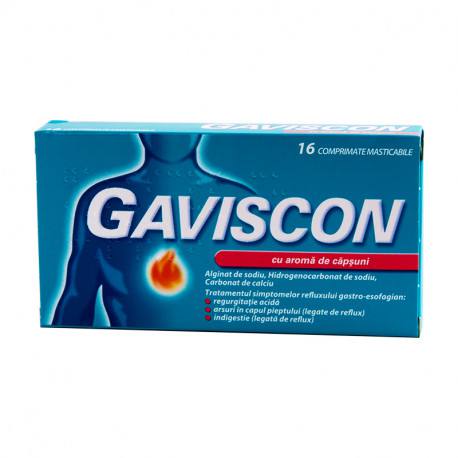 Gaviscon cu aromă de căpşuni comprimate masticabile se utilizează pentru tratamentul simptomelor refluxului gastro-esofagian, cum sunt regurgitaţia acidă, senzaţia de arsură în capul pieptului şi indigestia (legate de reflux) care pot apărea, de exemplu, după mese sau în timpul sarcinii şi la pacienţii cu simptome asociate esofagitei.