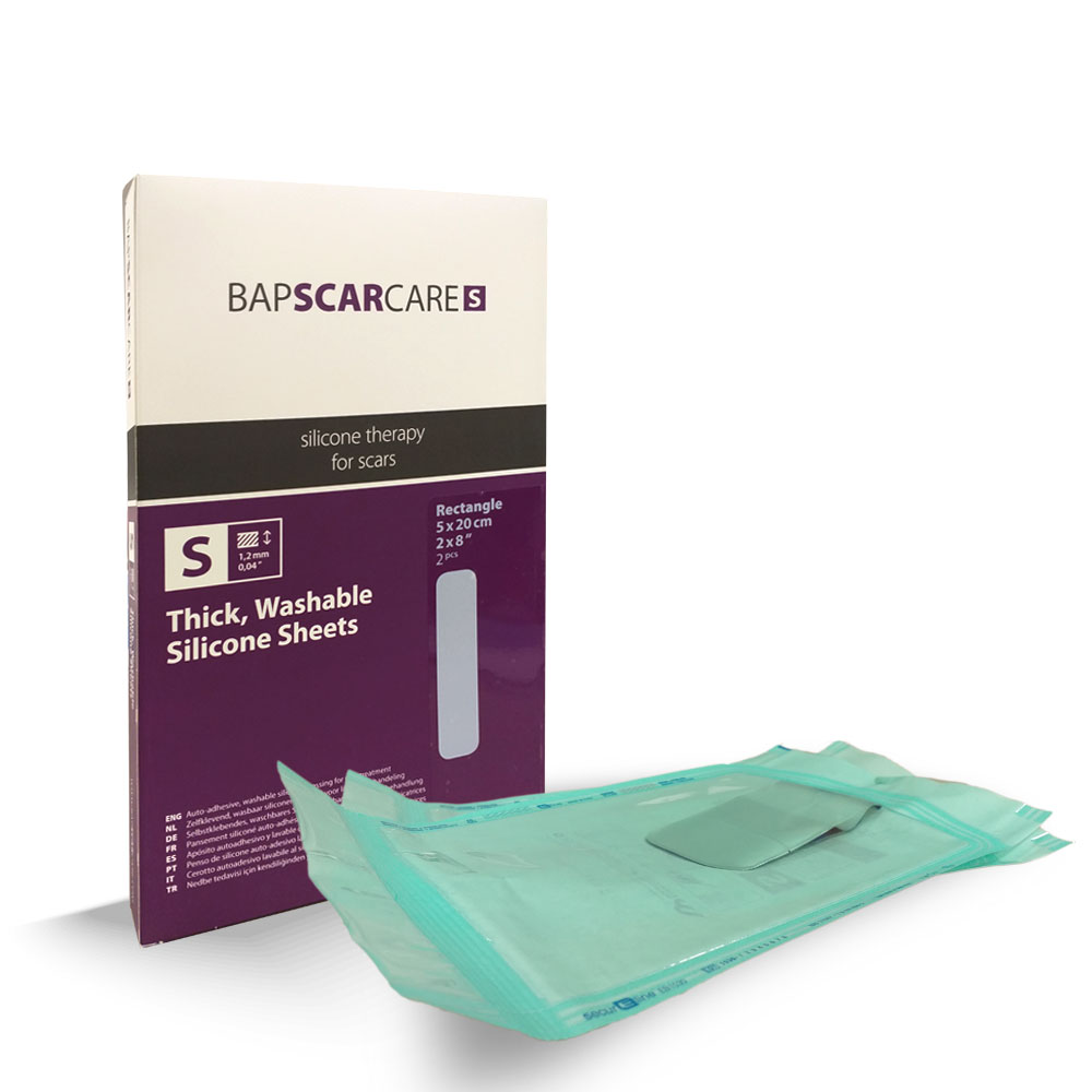 BAP SCAR CARE S este un pansament medical cu silicon, gros și lavabil, pentru tratamentul cicatricelor vechi și noi.